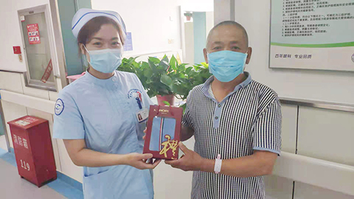 眼外伤科护士长杨娜娜为“老父亲们”送上节日礼物