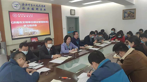 2月22日下午,医院召开《济南市文明单位建设管理条例》学习培训会,院领导班子全体成员、全体中层干部和护士长参加专题培训。医院纪委书记李洁月同志对《条例》进行了全面介绍,并对重点内容进行了详细解读。院党委书记吕丽萍同志在会上强调,全体干部职工要进一步强化文明意识,遵守文明单位建设相关规定,把文明单位创建工作与业务工作紧密结合起来,要珍惜来之不易的荣誉,擦亮省级文明单位这块“金字招牌”,以饱满的热情和规范的服务为广大群众营造良好的就医环境。