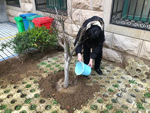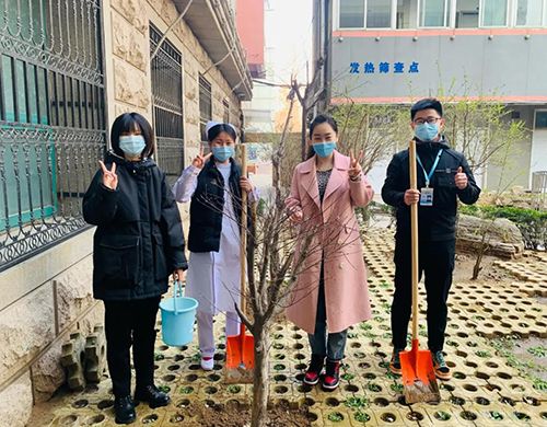 一大早,大家准备好铁锹、锄头、水桶,齐心协力地将一棵充满生机和希望的树苗植入土里。扶正树苗、挥锹铲土、填平树坑、踩实新土……各个环节衔接有序,配合默契,一起挥洒汗水播种绿树,为繁花似锦的春天增添了一份新绿,为市二院栽下一棵新树,种下一份新的希望。