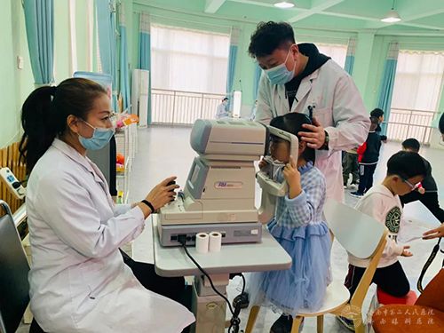 “上边毛,下边毛,中间一颗黑葡萄,小朋友们这是我们身上的什么器官?”“眼睛!”活动在一个有趣的谜语后开始,近200名小朋友们在多功能教室整齐坐好,认真聆听市二院配镜中心的青年志愿者精心准备的爱眼护眼讲座。在视力筛查环节,志愿者们为380名适龄儿童进行了视力筛查,建立起了视觉健康档案。对疑似近视的小朋友进行了第二轮验光复查,并向保健老师进行了专门反馈。义诊活动受到学校老师和学生家长的热烈欢迎和一致好评。