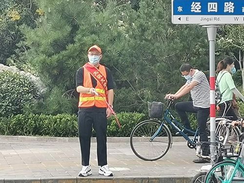 7点30分,4名志愿者准时来到了槐荫区经四纬六路路口,进入了各自的执勤岗位。他们手持“文明行车、礼让行人”的指挥旗,身着醒目的志愿者马甲,头戴安全帽,开展交通秩序维护、违规行为劝导和便民服务工作。“您好,为了您的安全,在线后停车”。“大娘,您慢点儿走,我帮您提东西”。标准的劝导语、规范的手势、热情的服务,得到了广大市民的认可。