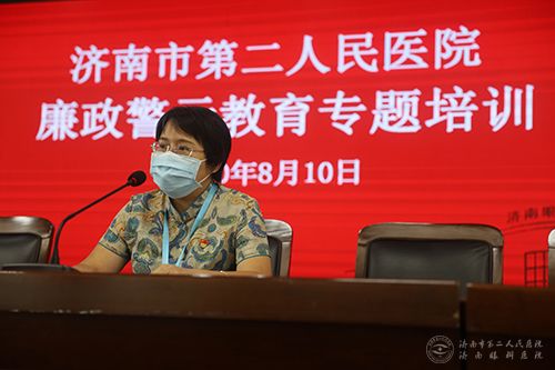 8月10日下午,市二院组织了中层干部、护士长调整任职以来组织的系列培训月活动之一---廉政警示教育培训,邀请市委巡察一组组长苏涛作专题培训。院领导班子成员、科主任、护士长、党支部委员、财务科、药学部、设备科、总务基建、信息科等重点岗位的工作人员100余人参加此次培训,纪委书记李洁月主持会议。
