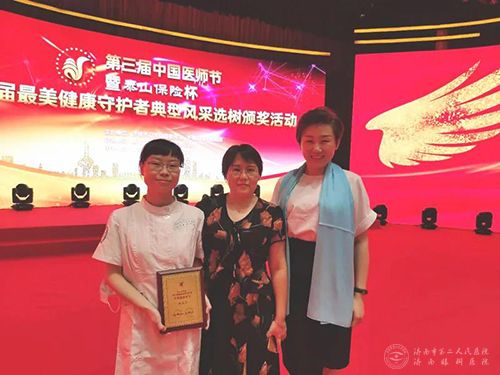 孙玉芹荣获“市级最美护士”荣誉称号。在二十年的护理工作中,她先后在内科、急诊、眼科从事一线护理工作。她把“全心全意为病人服务”当作自己的工作宗旨,始终坚持“微笑”服务。只要患者有需求,无论职责内外,她总是第一时间伸出援手。她多次获得医院“技术操作能手“、“优秀护士”称号,2018年度获得“济南市十佳护士”提名。