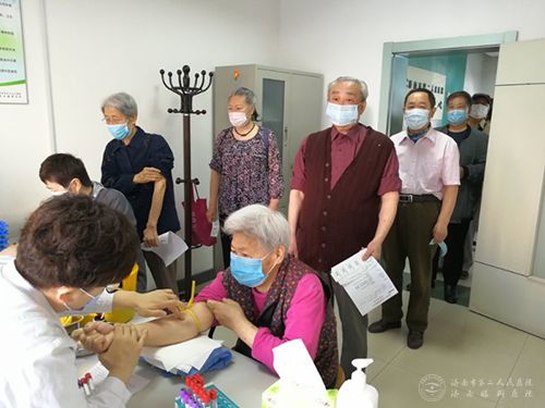老同志自觉排队抽血化验
