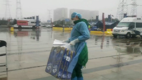 舱内6小时轮班制,根据医务人员进舱班次,每4小时发放一次物资,口罩、防护服、眼罩、手套……“护目镜告急!”立即联系方舱医院总部将消毒后的护目镜尽快送达B舱;即将有一批病人要出舱,提前准备好消杀物品;社会捐赠的生活物资抵达,协调货车进院路线,核对物资,验收入舱并签字……没有推车,李林峻二话不说,立即当起了搬运工,扛不起来就拖着、拽着,把货物从库房转移到B舱;没有办公室、没有桌子,她就趴在凳子上统计数据;忙到下午2点,才能吃饭的李林峻站在医院大院里,刚端起已经凉透了的盒饭,对讲机里就传来“口罩告急”的声音,她立即放下饭就跑进仓库翻口罩;晚上有防护物资紧急送达,不收货怎能收工。
