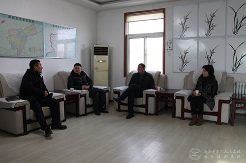 1月3日,济南市二院党委书记吕丽萍、副院长王俊峰、曹传洲等一行,赴济阳区新市镇看望挂职党建办副主任姚辉同志。新市镇党委副书记、镇长付丰亮,党委副书记王勇及新市镇挂职党委副书记卞鹏参加会议。