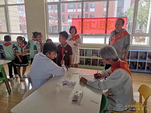 健康促进志愿者服务队开展以“健康每一天 从爱牙开始”为主题的义诊活动,来到槐荫实验小学进行口腔保健知识的宣教,并进行口腔检查,对符合窝沟封闭条件约100余人,进行了预约就诊并给予费用优惠,对贫困人口等群体给予费用减免。