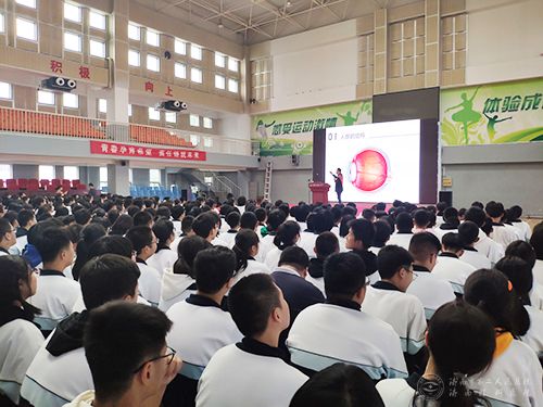 “近视早防控”公益志愿项目走进济南市第九中学开展讲座活动。医院小儿眼病专业副主任医师傅特受邀为学校全体高一师生,带来一堂生动的常见眼病防治普及课。