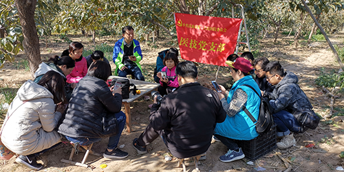 医技党支部开展了一次别样的主题党日活动,支部的全体党员在济阳县垛石镇大赵村的柿树林里,过了一个既有“党味”又有“趣味”的主题党日活动。