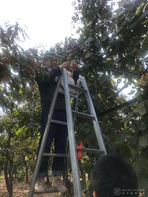 爬上梯子摘柿子