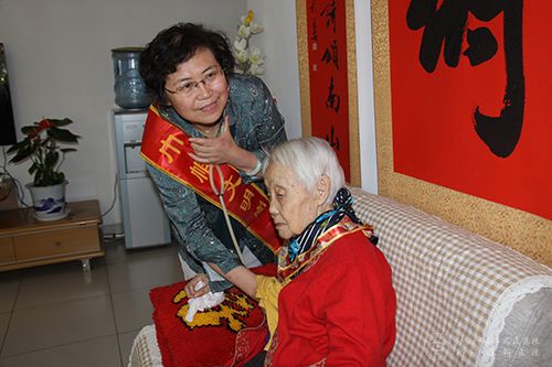 为认真落实济南市精神文明建设委员会办公室《关于广泛开展“我们的节日•重阳”主题活动的通知》,大力弘扬中华优秀传统文化,培育和践行社会主义核心价值观,传承中华民族尊老、敬老的传统美德,市二院妇委会将为离退休老干部送健康作为“我们的节日•重阳”的主要活动内容。重阳节前夕,“巾帼文明岗”的同志为医院百岁老人刘漪上门进行健康查体。