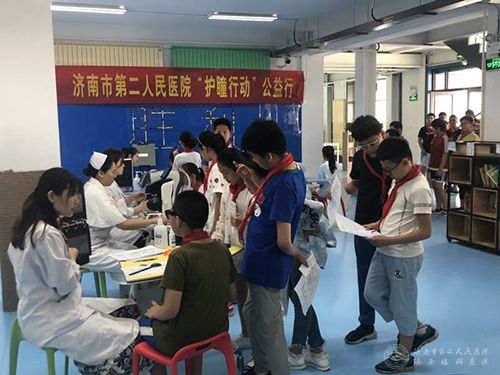 和济南市市中区教育局联合举办的“护瞳行动”大型志愿服务项目走进济南市胜利大街小学,这是医院在完成对济南市南上山街小学学生眼健康志愿服务后的第二站大型校园公益服务行动。