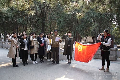 活动伊始,二院职工们面向纪念碑肃穆站立,参加悼念仪式。大家唱国歌,到纪念碑前敬献花圈,向革命先烈鞠躬致敬。仪式后,各党支部进入陵园进行瞻仰,聆听革命烈士事迹,学习革命精神。院团委组织青年团员开展了“勿忘先辈·牢记使命”主题团日活动,再次回顾济南战役历史,重温入团誓词。