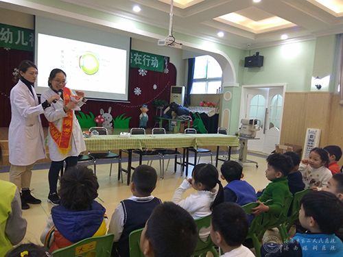 开展了“青年文明号在行动·走进幼儿园”系列公益志愿活动,为市中区银丰山庄幼儿园的小朋友们带来了眼健康讲座和专业视力检查。