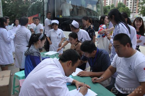 下午2点,市二院的干部职工们在采血车前排起了长龙,无论是刚完成手术的医生,还是下中午班准备回家的护士,大家都纷纷伸出手臂,用实际行动支持无偿献血事业。很多上夜班的职工,听说医院开展无偿献血活动,都提前赶到单位。医院的实习医师、保安员、保洁员也受到感召,加入到献血大军中。大家匆匆地赶来,悄悄地离开,很多同志献完血后略作休息,又投入到紧张的工作中。
