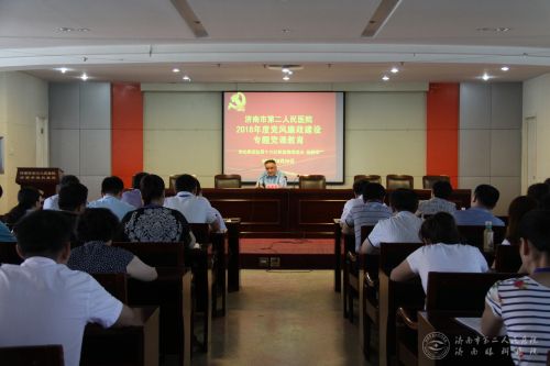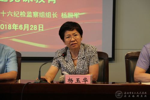 为深入学习贯彻习近平新时代中国特色社会主义思想和党的十九大精神,全面落实从严治党要求,进一步加强党员干部思想政治觉悟和遵纪守法意识,结合济南市卫计系统开展的“大学习、大调研、大改进”和“三照三转三改三推”活动,6月28日下午,市二院邀请市纪委派驻第十六纪检监察组组长杨照军书记为全院党员干部做党风廉政建设专题党课。市卫计委杨玉华副主任出席会议,党委班子成员和党员干部共计160余人参加。