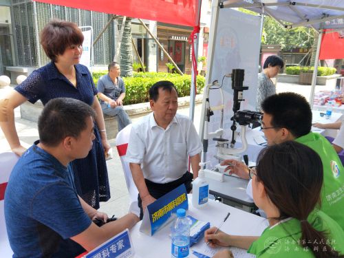 活动现场,市二院眼科专家为市民们做了视力、裂隙灯等眼部检查,并耐心细致地回答了市民咨询。活动中,有一位阿姨因疾病无法口述疾病,特意拿着纸条来询问眼科问题,眼科专家通过裂隙灯检查,发现阿姨有轻微白内障,便为阿姨填写了“启明卡”作为就诊记录,并体贴地在纸条上写下病情及注意事项等。