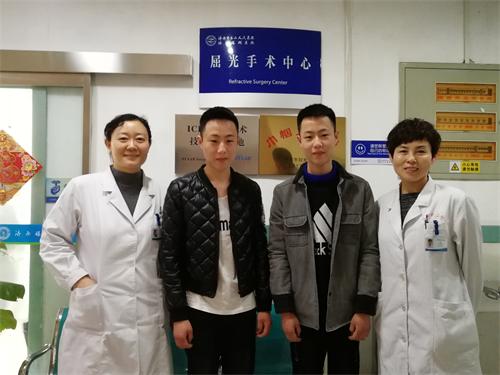 在做好了两天的氧氟沙星消炎眼睛后,兄弟俩来到医院。手术护士为兄弟俩做好术前准备,等待着手术中,弟弟对手术显得很兴奋,而哥哥却格外紧张,不知道接下来的手术会怎样。带着忐忑的心情,弟弟先被带进手术室,经过五分钟的手术后,顺利走出手术室,看的出,哥哥已经没有了先前的紧张,哥哥迫不及待的问弟弟手术情况,弟弟很轻松地回答:“一点也不疼,我现在感觉很好。”哥哥有了弟弟这番话后更加有信心,同样也是五分钟,顺利走出手术室。 术后第一天进行的复查,两兄弟都恢复得不错,两个眼睛都是1.2,兄弟俩为以后不用再戴眼镜兴奋不已。