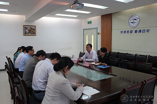 5月9日上午,济南市人才服务局专家处刘仁越处长一行到市二院调研“博士后创新实践工作站”建站情况。市二院党委书记牟鑫,纪委书记、副院长程晓麟,院长助理、组织人事科科长王俊峰,科教科科长助理孙少芳,眼科研究所负责人张晨明陪同调研。
