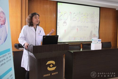 3月13日下午,市二院门诊病房楼七楼会议室里坐满了前来听讲座的患者,眼科副主任医师孙嬿为大家做了题为《世界青光眼周,提防隐形视力杀手》的讲座,为大家全面介绍了什么是青光眼以及青光眼的分类及治疗,帮助大家进一步增强对青光眼的认识;眼科主治医师聂巧莉通过《急性闭角性青光眼的早期表现与预防》的主题讲座,阐述了发现潜在青光眼患者,进行早期诊断与治疗的重要性;俗话说“三分靠治疗七分靠护理”,主管护师李宁为大家讲解了护理方面的知识,尤其是针对部分青光眼患者脾气暴、性子急的特点,通过《青光眼病人的护理及健康指导》的讲座,详细地讲述了青光眼患者日常生活注意事项及青光眼术后护理重点。
