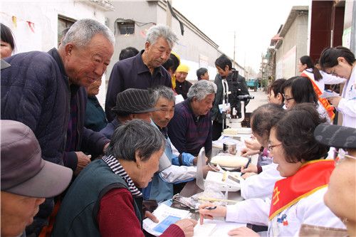 工会、妇委会组织医院巾帼文明岗屈光手术中心及眼科、内科、中医眼科专家走进齐河县李家岸村开展健康义诊及眼病筛查、健康咨询活动。