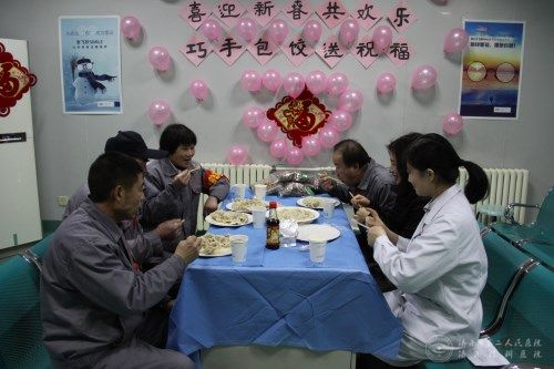 活动开始,院党委书记牟鑫、副院长张毅为保洁师傅们送上保温杯,并向辛苦工作的保洁师傅们带来诚挚的新年祝福。活动现场充满了欢声笑语,气氛温馨祥和,大家齐心协力,拌馅、擀皮、煮饺子,而这一份份饱含爱心的水饺是要送给辛苦一年的医院保洁师傅。时间不长,热腾腾、香喷喷的饺子就送到了每一位保洁师傅的手里。吃着饺子保洁师傅们乐得合不拢嘴,不停地念叨着“真香,真香,都是家的味道”。师傅们真挚朴实的话语,医护人员暖暖的爱心,将冬天的寒冷驱散,让他们感受到医院大家庭的节日温暖。