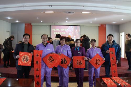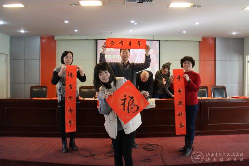 活动在医院门诊病房楼七楼会议室举行,邀请了职工及职工家属中的书法爱好者作为主角,他们挥毫泼墨,把对职工群众的祝福和对幸福的期盼,书写在火红的春联里。活动的开展凝聚正能量,为广大职工群众送上新春祝福和文化大餐。(工会 郭兆瑞)