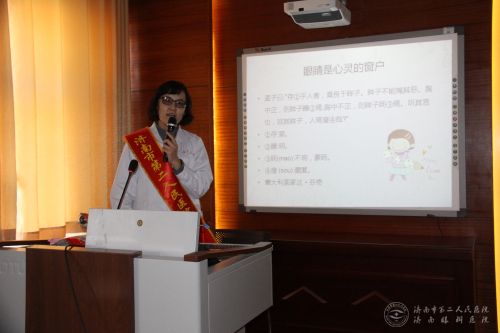 主讲人由来自市二院青年眼科医师宿艳担任,她深入浅出的为孩子们讲解了常见儿童眼病的成因,预防等知识,手把手纠正了同学们眼保健操的错误姿势,并通过小奖小问答的形式,在愉快的互动中,为孩子们强化了保护视力的有关知识。
