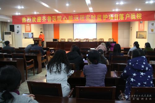 监护站”揭牌。揭牌仪式后,伊院长进行了《远程心电监测技术及临床应用》专题讲座,介绍了心电远程监护的发展及齐鲁医院的发展,并对市二院使用的系统进行了详细介绍及教学,让大家了解了具体的工作流程。最后,市二院心电图室主任高爱玲介绍了工作站的工作情况和今后的发展方向。
