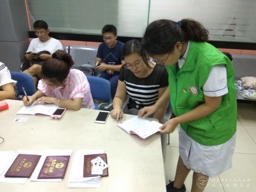 志愿者指导群众填写表格