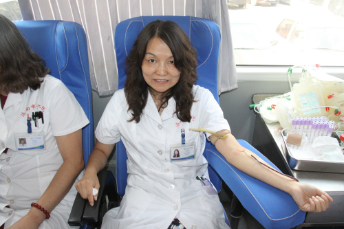“我来了,我来了,咱这时间正好赶上”一位护士一边填写献血登记表一边说,她是眼三科的任艳霞,上完中午班刚刚下班的她急忙赶来献血:“我经常在电视上看到新闻里说血站、血库库存不充足,如果有病人需要输血但是血库缺血这就很危险了,所以我也想尽自己一份力量去帮助那些需要帮助的人。”