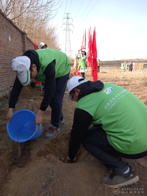 团委组织青年志愿者来到济南市皮肤病防治院住院部参加“益健康 助创城”青年志愿行动启动暨植树活动。