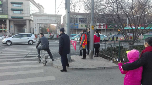在早晚上下班高峰时段,来自医院的4名志愿者身着统一着装,手持文明劝导小旗,到指定路口开展文明交通志愿服务活动。活动中,志愿者们顶着凛冽的寒风,不辞辛苦地开展了交通秩序维护、文明出行劝导、安全出行提示、文明交通宣传、交通引导咨询等五大类志愿服务,以实际行动积极倡导车辆让行人、车辆让斑马线、车辆按序通行、车辆有序停放、文明使用车灯、行人车辆各行其道、行人车辆过街遵守信号灯等“七大文明交通行为”,并对行人关于公交停靠点、行车路线等问题进行了耐心解答,受到广大市民的好评。