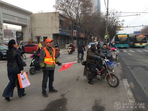(济南眼科医院)按照文明办的统一部署,组织志愿者在经七纬六路路口分时段维护交通秩序。