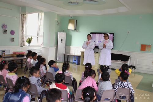 “小朋友们,伸出你们的小手来,跟着姐姐一起做游戏。”专家授课后,来自市二院的两位年轻护士还示范了七步洗手法,让孩子们学习正确的洗手方法,理解洗手的重要性,帮助孩子们逐步形成有益于健康的行为和习惯。
