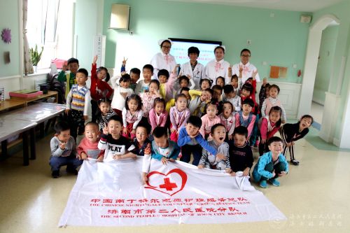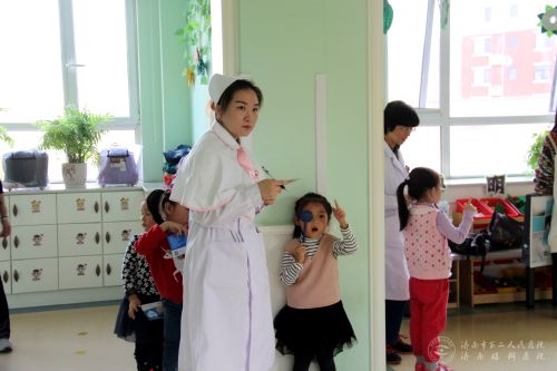 (济南眼科医院)南丁格尔志愿护理服务队走进济南市历下区紫苑幼儿园,开展了“爱之光—眼博士大课堂”志愿者服务活动。