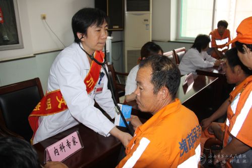 (济南眼科医院)与五里沟城管委联合举办了“眼博士大课堂”之“关爱环卫工,夏日送健康”公益行动,为环卫工人们送去了一份眼健康“大礼”。