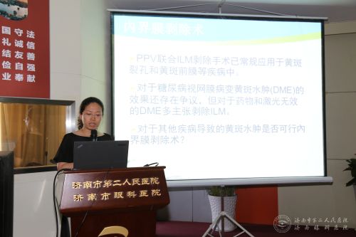 在接下来的手术专题讲座和视频展示环节中,来自中山大学中山眼科中心的马进教授和济南市二院的季强主任医师分别做了题为“Anti—VEGF应用的个性化抉择”和“现代玻切手术新进展”的专题讲座,山东大学齐鲁医院及山东中医药大学附属眼科医院的眼科专家分别就Ⅰ型糖尿病视网膜病变的治疗、Ⅵ期糖尿病视网膜病变增殖膜的处理进行了展示,并针对大家提出的问题进行了讲解。活动最后,济南市二院眼二科主任助理、范传峰副主任医师、盛艳娟副主任医师以及部分其他地市的眼科专家分别就“非常规病例内界膜剥除术的尝试”、“特殊的玻璃体积血手术”等内容进行了经验交流,山东大学齐鲁医院的周芳教授、烟台毓璜顶医院的高磊主任医师等专家对交流内容进行了点评。