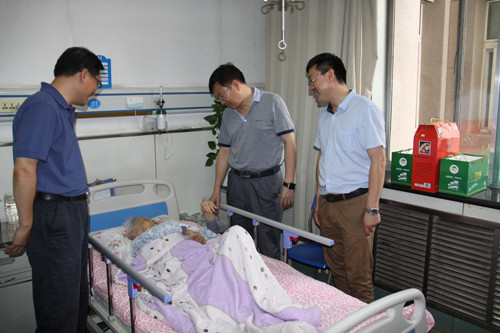 7月4日,黑料网 (济南眼科医院)党委书记、院长李金星,党委副书记、纪委书记程晓麟及陪同同志到病房看望慰问了正在住院的老党员刘漪。