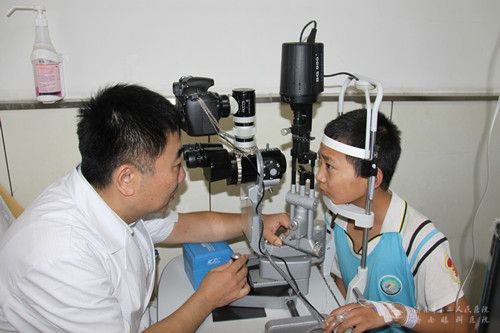 眼表疾病科主任王旭为患儿检查眼睛