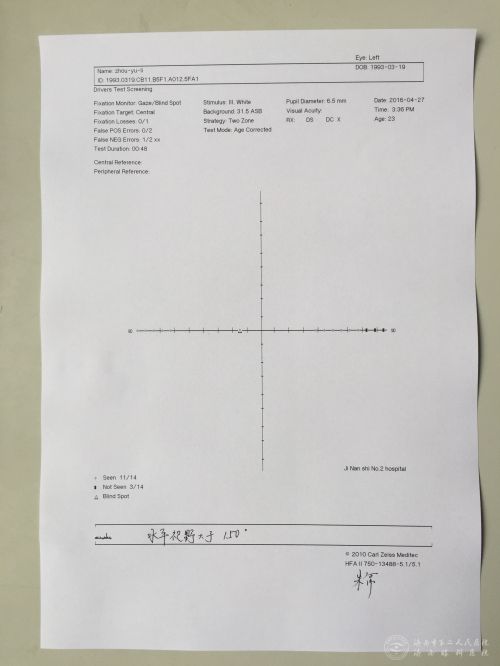 (济南眼科医院)拥有国际最先进的德国蔡司公司产全自动静态Humphrey750i视野计,可以进行水平150度的视野检测,检查过程仅需不到2分钟的时间。仪器检查后,将由专业的眼科特检人员分析数据,并出具专业报告。