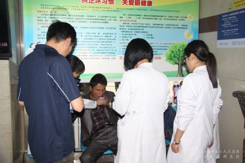 (济南眼科医院)门诊病房楼大厅里,就诊的人潮渐渐退去,白天的喧嚣也渐渐归于平静。突然,导医台医护人员急促的呼喊声打破了这短暂的平静,“不好了,有人晕倒了。”顺着呼喊声,只见一名男子躺在地上一动不动,周围的工作人员赶忙通知内科和注射室的医护人员。不到一分钟,内科医护人员赶到现场进行抢救。经过初步检查,男子意识丧失,四肢肌肉僵直,血压为120/70mmHg,心率90次/分,呼吸规律,血压、心率/律正常。正当医护人员准备为其测量血糖时,男子醒了过来,大家赶忙把他扶到旁边的椅子上坐下。