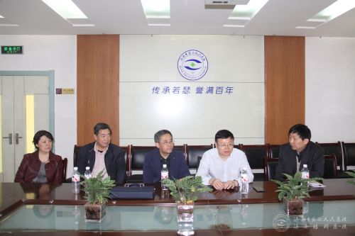(济南眼科医院)洽谈眼视光专业合作建设事宜。市二院党委书记、院长李金星,副院长吕丽萍及相关职能科室主任参加会议。
