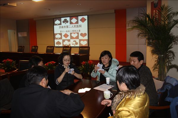 (济南眼科医院)举办了第十一届够级大赛。此次大赛由院工会组织,共有16支队伍参赛,在一天的紧张工作后,选手们经过4个小时的激烈角逐,最终冰点队杀出重围,夺得“牌王”桂冠。