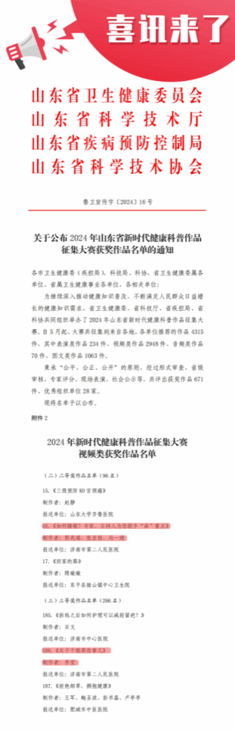 )多项健康科普作品在省级比赛中脱颖而出,荣获佳绩。