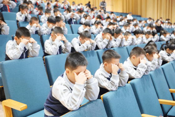 孩子们认真学习眼保健操
