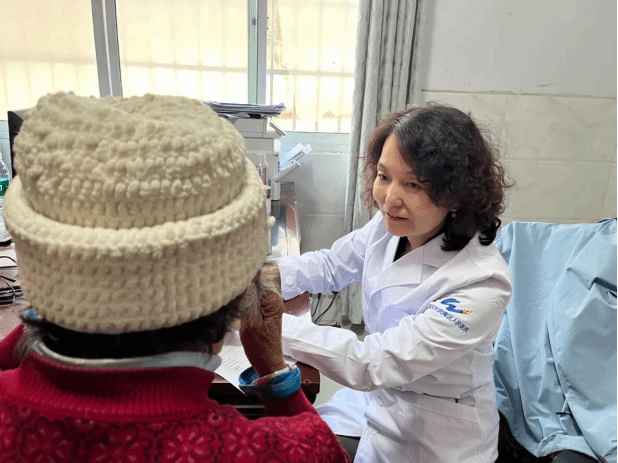 李彬教授为患者检查眼睛