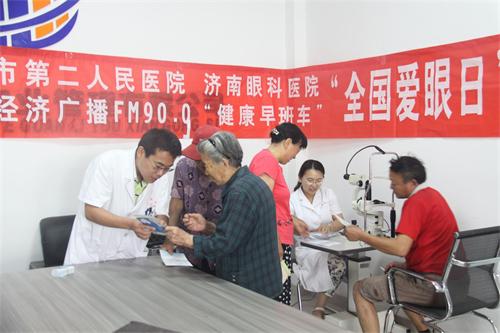 (济南眼科医院)和济南经济广播“健康早班车”联合开展的义诊活动在张庄社区拉开序幕,医院的医务工作者们为社区的居民提供了义诊服务。