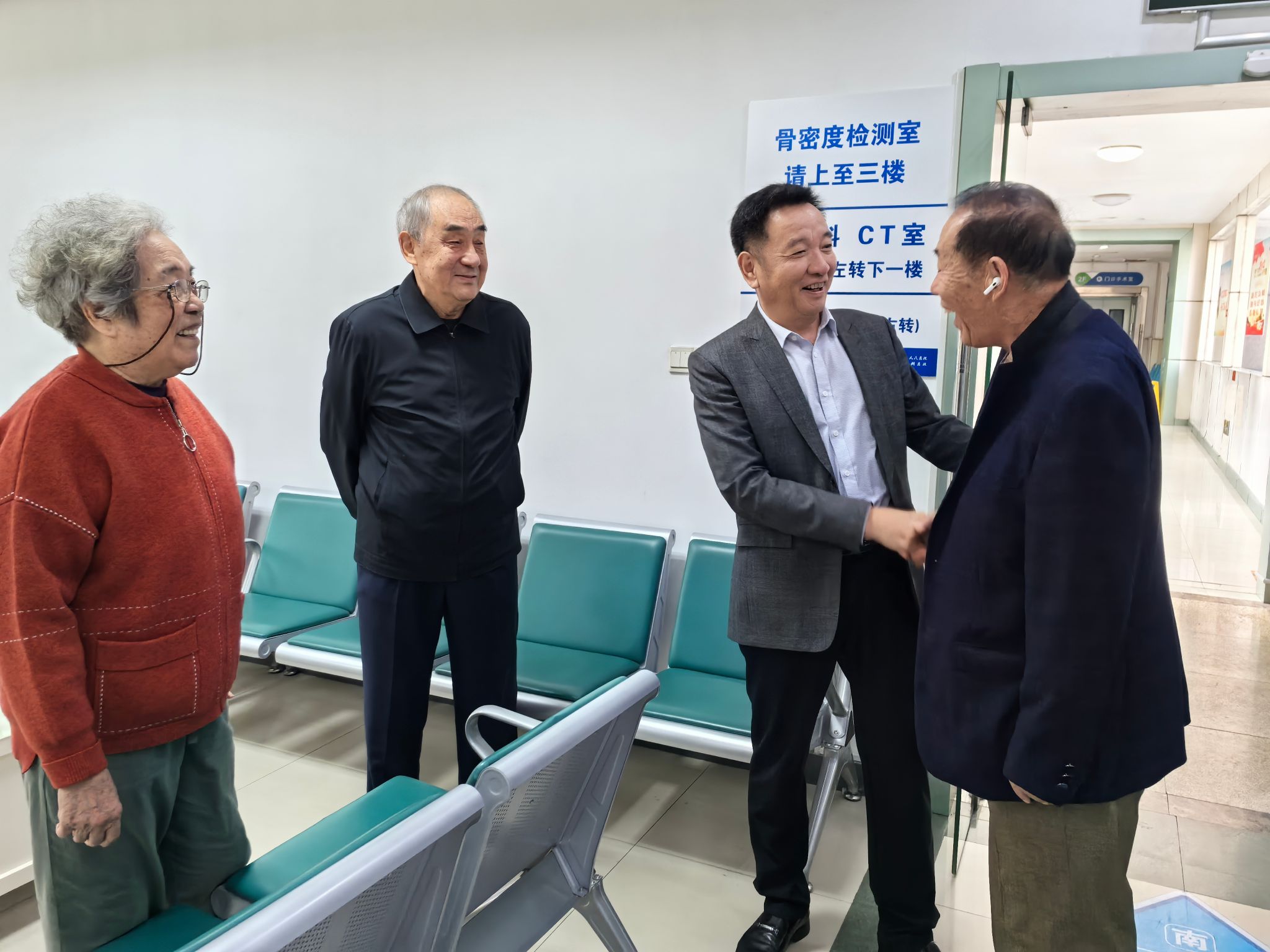 为确保体检工作的顺利进行,离退休职工管理科提前进行了精心的筹备与安排,通过电话逐一与参检人员确认体检项目及查体日期,确保每位退休职工都能按时参加体检。同时,为全力保障老同志的安全。在体检过程中,体检中心的工作人员与志愿者们全程陪伴,细心引导大家完成每一项检查,用实际行动诠释了尊老、敬老的传统美德,为退休职工们提供了温馨、便捷、贴心的服务。他们的专业与热情,赢得了老干部们的一致好评与高度赞誉。院党委书记东光国、院长刘军、专职党委副书记曹传洲也来到体检现场,慰问参与体检的老同志,关切地询问老同志的近况,耐心听取老同志的意见建议,嘱咐他们气温骤降注意保暖。