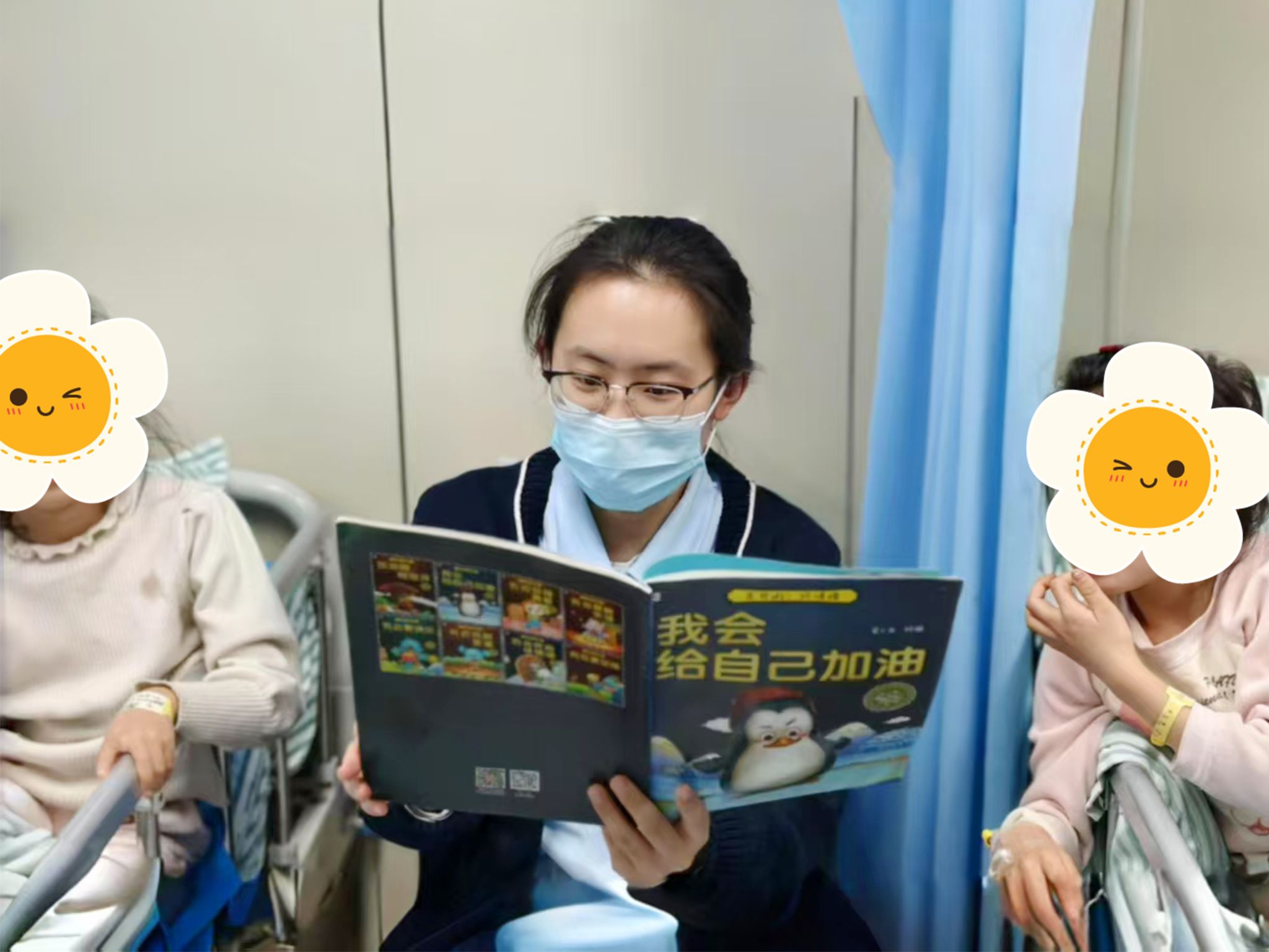 护理人员为小朋友们读绘本